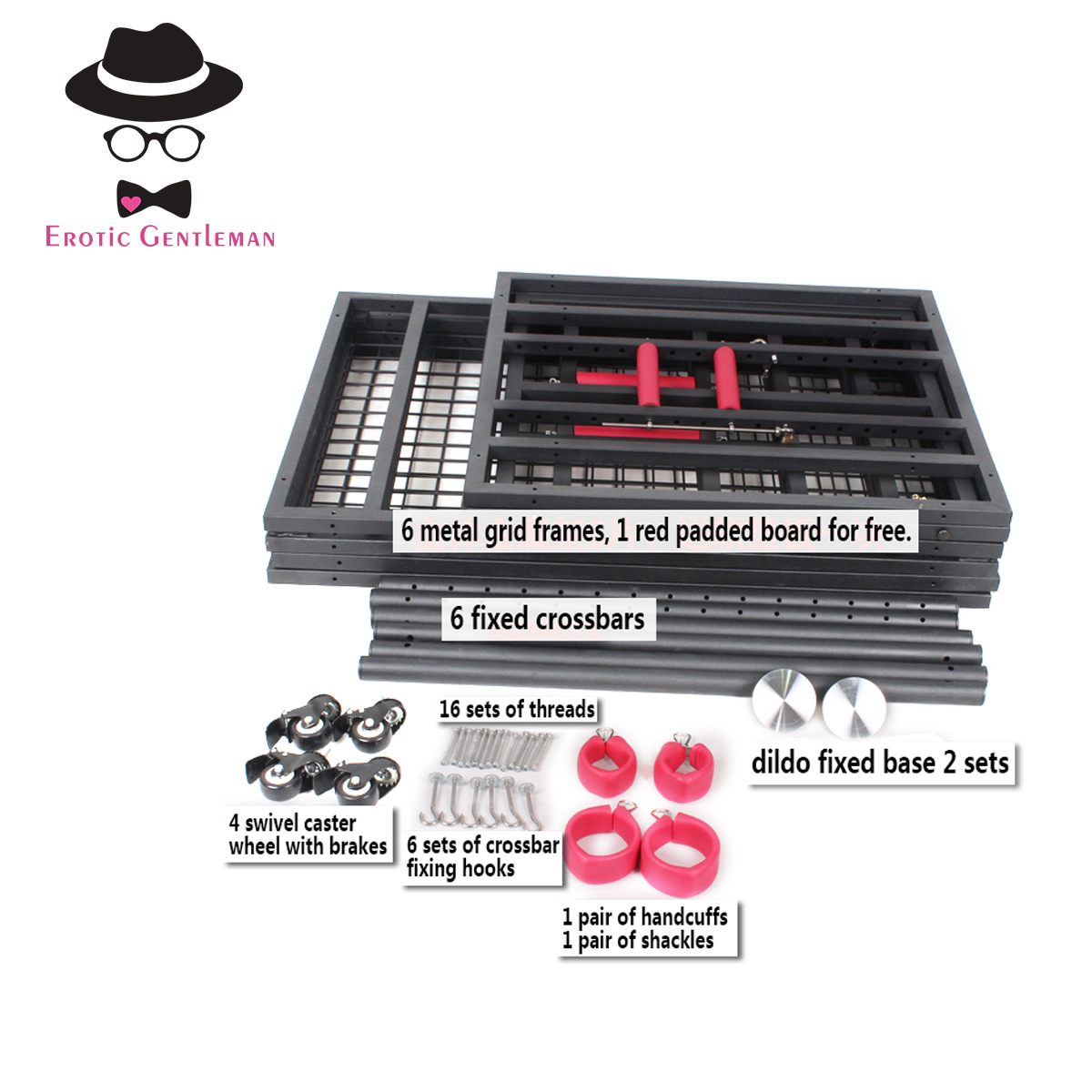 | Multifunction: | 1. Various body joints can be restrained by the crossbars; 2. The back frame can be removed for easy Discipline & Sadism. 3. The dildo base can be installed in most places in the cage. 4. The front frame neck clamp cotton cover has a steel pipe inside, and the neck clamp is equipped with locks. Products include: Main metal frame 6 pieces,Complimentary 1 piece of soft board pad,6 fixed crossbars,6 crossbar fixing hooks,1 pair of handcuffs and legcuffs each,16 assembly screws,1 set of assembly tools,2 suction cup dildo support plates (dildo not included),4 swivel caster wheel with brakes,4 locks & 2 door pins (all lock pins have been installed on the main metal frame). |